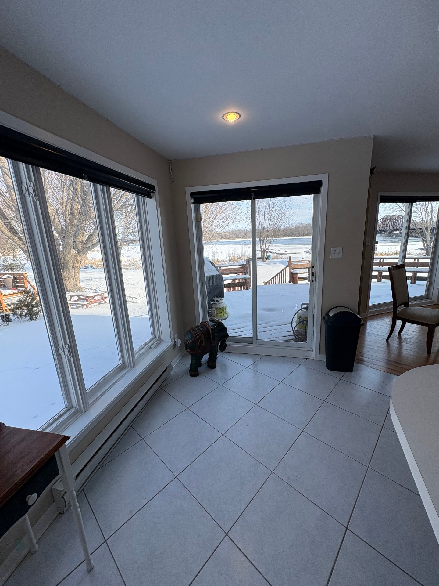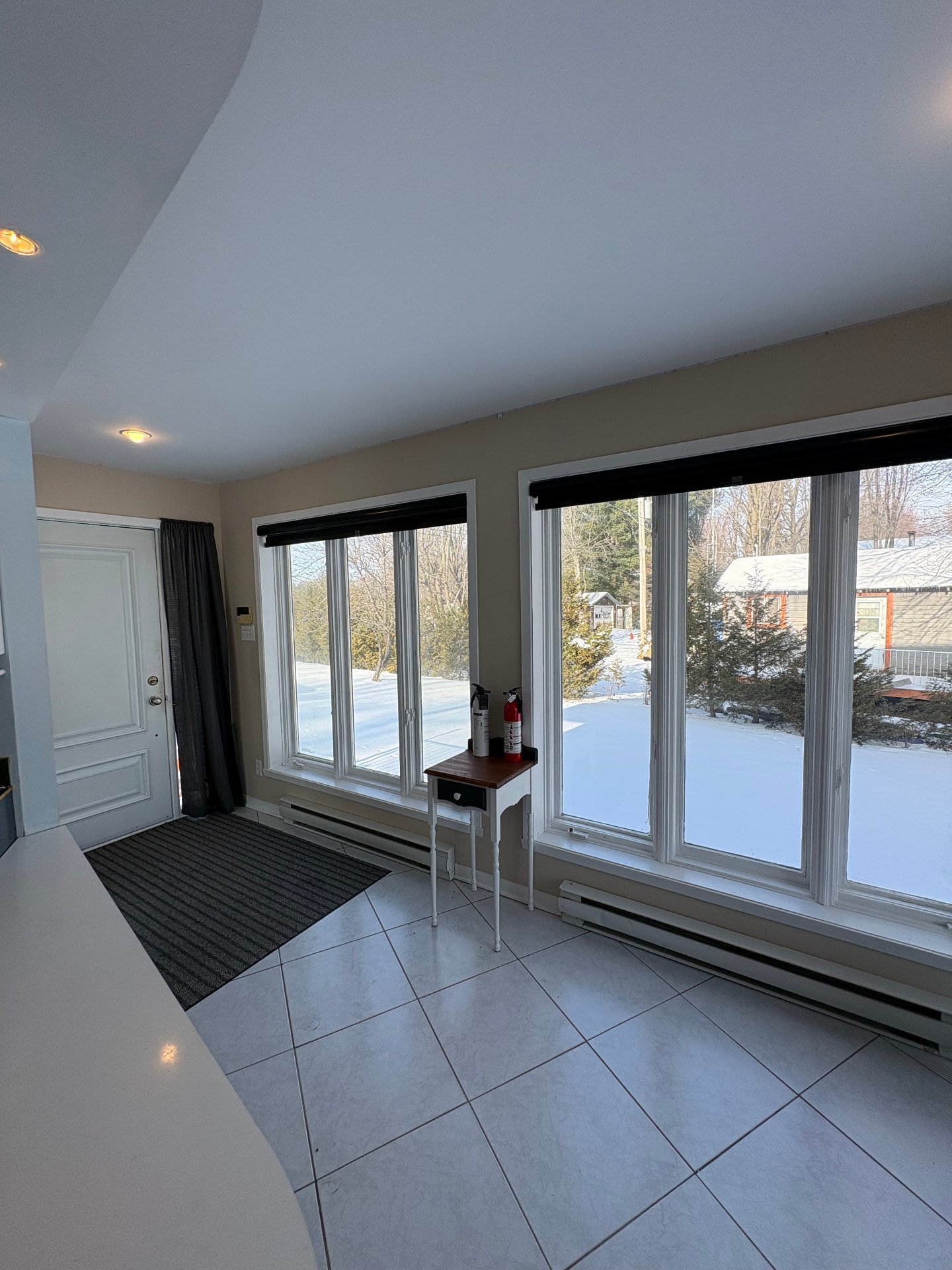 Exceptional waterfront rental in Lacolle, surrounded by nature and set on a generous lot offering privacy and tranquility. This bright and inviting home features 3 bedrooms and 2 bathrooms with a spacious open-concept layout designed to maximize light and views. Expansive windows throughout flood the home with natural light and offer stunning, uninterrupted views of the water and surrounding greenery from the main living areas. The connection to nature is felt in every room. A finished attic loft / nook provides a versatile space ideal for a teen hangout, office, or cozy retreat. Outside, enjoy direct access to the water with a private dock,