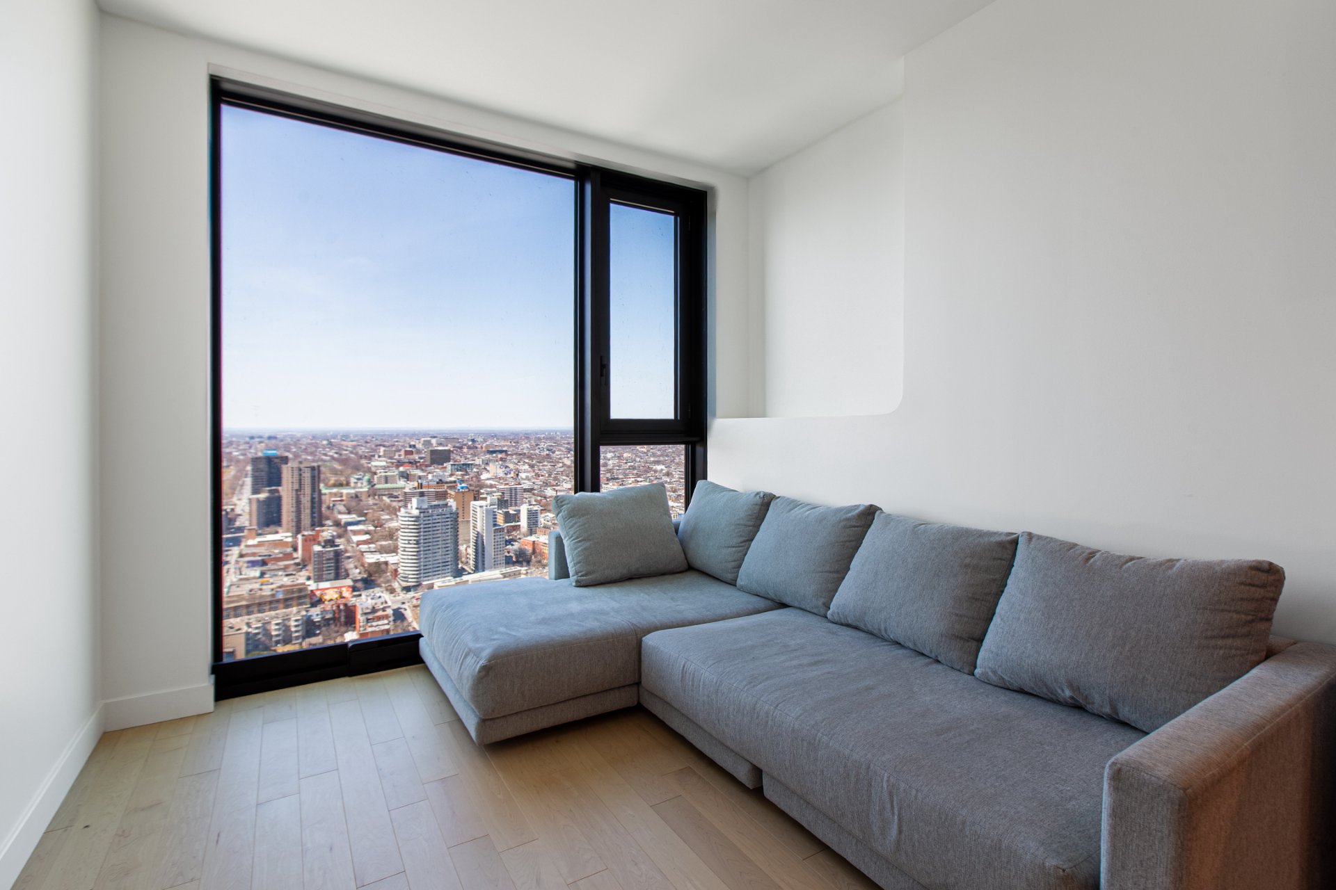 Bienvenue à Maestria, au coeur du Quartier des Spectacles. Ce superbe 1 chambre situé au 48e étage offre des vues imprenables et dégagées sur la ville, le mont Royal et de magnifiques couchers de soleil. De grandes fenêtres pleine hauteur inondent l'espace de lumière naturelle. L'une des plus grandes configurations 1 chambre de l'immeuble, alliant fonctionnalité et élégance moderne. À quelques pas de la Place des Arts, McGill, UQAM, Concordia, du métro, des restaurants et de la vie nocturne. Profitez d'installations luxueuses : piscines, gym, cinéma, simulateur de golf et passerelle emblématique.